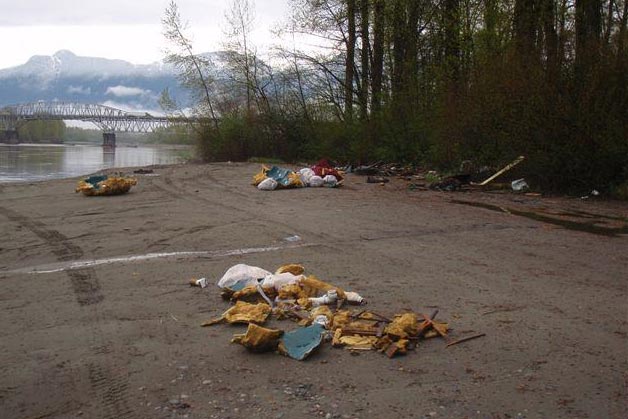 Last weekend, Fraser Valley Salmon Society's director Nick Basok sent us photographs he took just downstream from the Aggasiz Bridge in Chilliwack, which showed garbage being dumped along the river bank. As the Fraser River rises in the next few weeks due to freshet, these will be washed away if not cleaned up. Luckily, the Cheam First Nation has also been made aware of the problem and taken the time to clean it up. Illegal dumpings like this are unfortunately quite common in the Fraser Valley, and all communities are working hard to combat it.